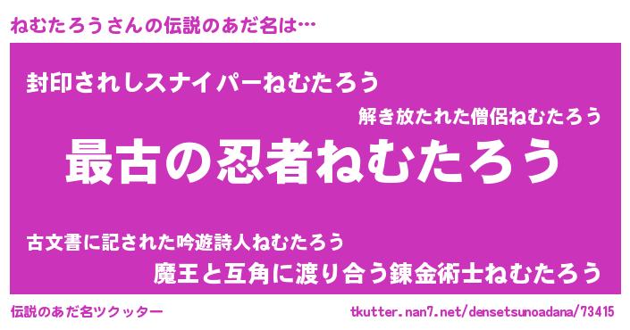 | 意味不明あだ名 | 『住所不定無職ねむたろう(41歳)』 |
