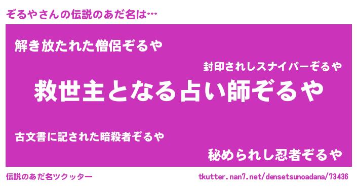 | ヒーロー風カッコイイあだ名 | 『天空の使者ぞるや』『幻影騎士ゾル』 |