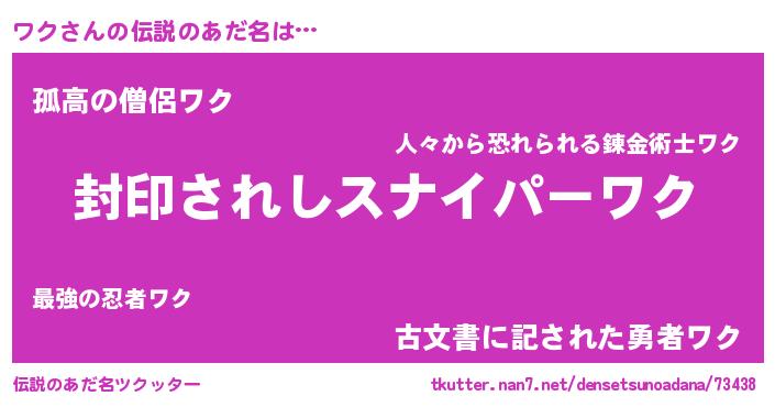 | ヒーロー風カッコイイあだ名 | 『スーパーワク』『暗黒騎士ワク』 |