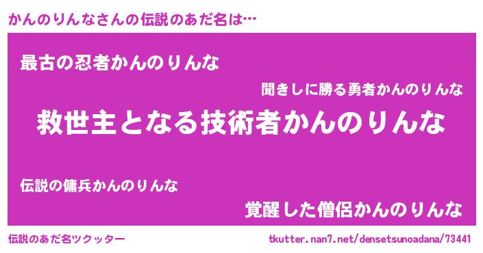 | 胡散臭い通販商品みたいなあだ名 | 『あなたにだけ特別に提供する100年もののヴィンテージワイン…その名も「かんのりんな」』 |