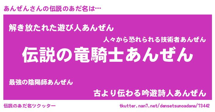 | ヒーロー風カッコイイあだ名 | 『スーパーアンゼン』『銀牙騎士アン』 |