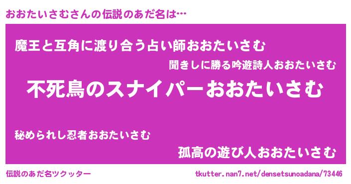 | ヒーロー風カッコイイあだ名 | 『スーパーオオタイサム』『黄金騎士オオ』 |