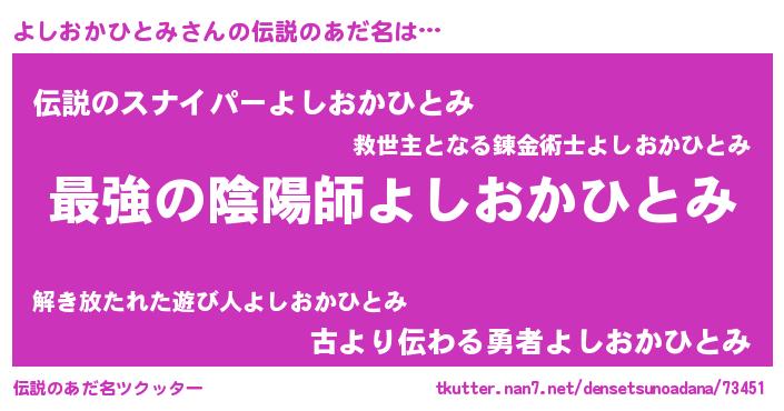 | ヒーロー風カッコイイあだ名 | 『究極戦士ヨシオカヒトミ』 |