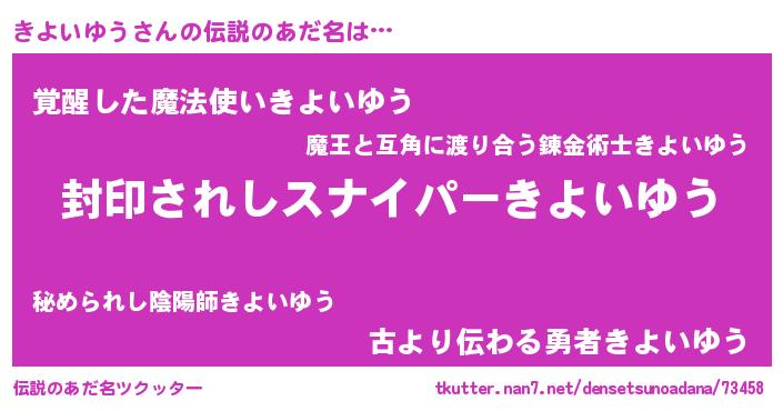 | 胡散臭い通販商品みたいなあだ名 | 『億万長者になれる霊験あらたかなお札…その名も「きよいゆう」』 |