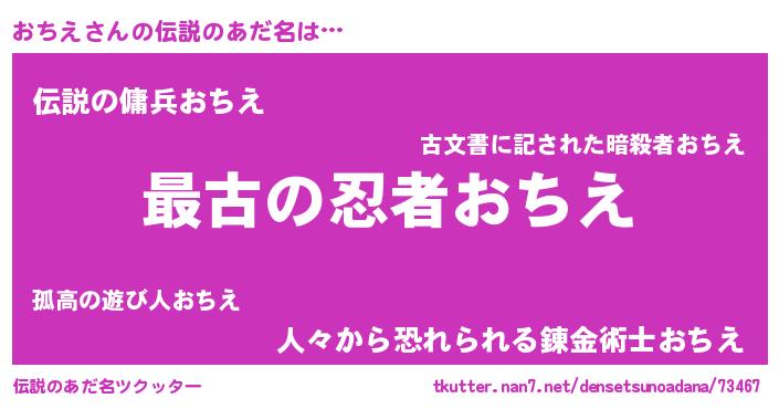 | 意味不明あだ名 | 『自称おちえ』『たけのこ科おちえ属』 |