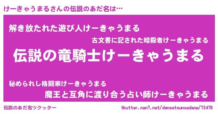 | 恥ずかしいあだ名 | 『プリティーけーきゃうまる』『けーちん』 |