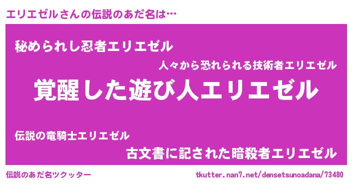 | 意味不明あだ名 | 『自称エリエゼル』『永久保存エリエゼル』 |