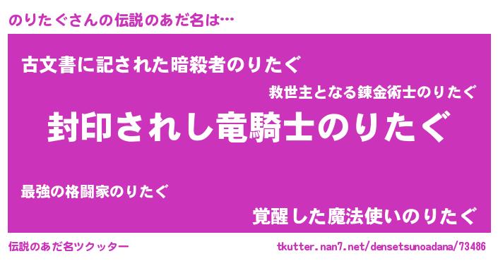 | 胡散臭い通販商品みたいなあだ名 | 『億万長者になれるブレスレット…その名も「のりたぐ」』 |