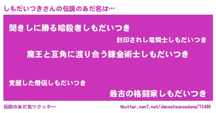 女子向けラノベタイトル風あだ名 | 『しもだいつき恋絵巻』 |