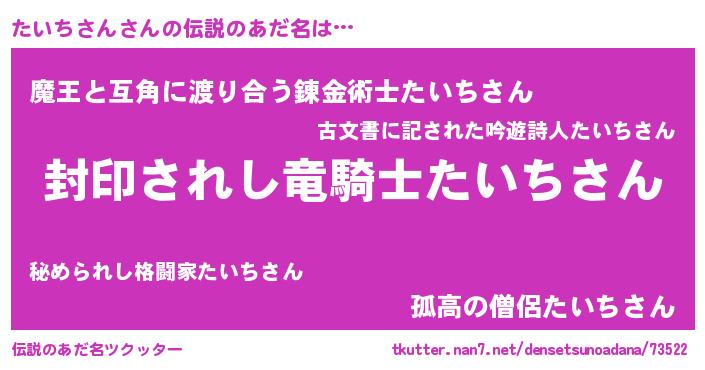 | ヒーロー風カッコイイあだ名 | 『スーパータイチサン』『魔戒騎士タイ』 |