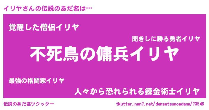 | 意味不明あだ名 | 『ペロリンイリヤ』『自称イリヤ』 |