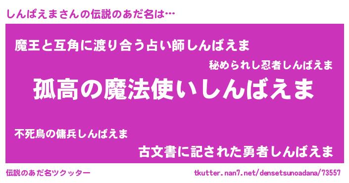 | ヒーロー風カッコイイあだ名 | 『魔戒騎士シン』『友情の使者しんばえま』 |