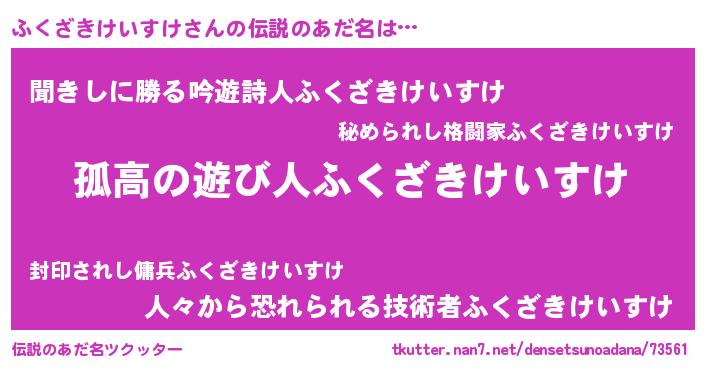 | 意味不明あだ名 | 『住所不定無職ふくざきけいすけ(77歳)』 |