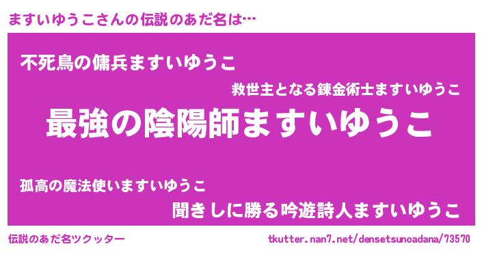 | ファンタジー風あだ名 | 『エターナルマスイユウコー』 |