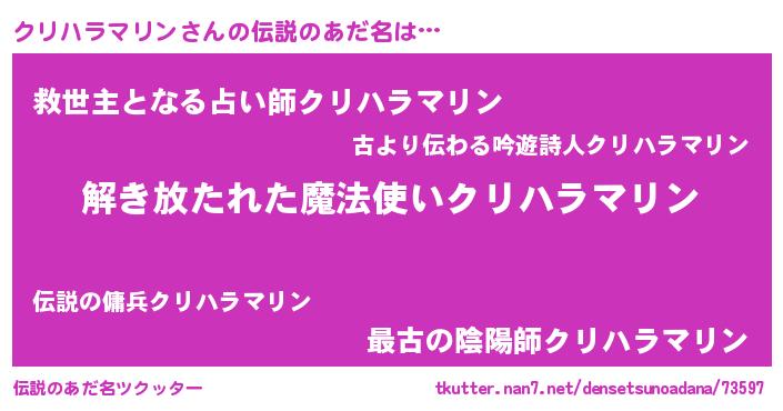 | 欧米人風あだ名 | 『トリンドルクリハラマリン』 |