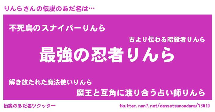 | ヒーロー風カッコイイあだ名 | 『ウルトラりんらマン』『スーパーリンラ』 |