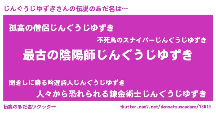 | 意味不明あだ名 | 『住所不定無職じんぐうじゆずき(74歳)』 |