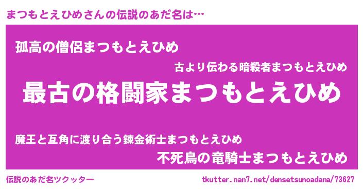 | 男性向けラノベタイトル風あだ名 | 『やはりまつもとえひめの青春ラブコメはまちがっている 』 |