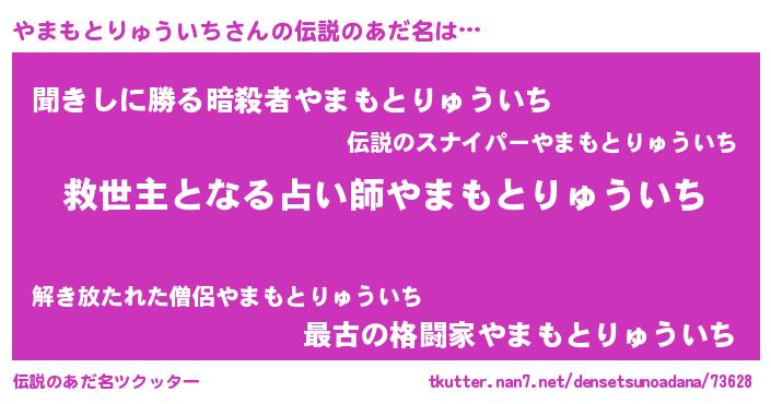 | 男性向けラノベタイトル風あだ名 | 『この素晴らしい世界にやまもとりゅういちを!』 |