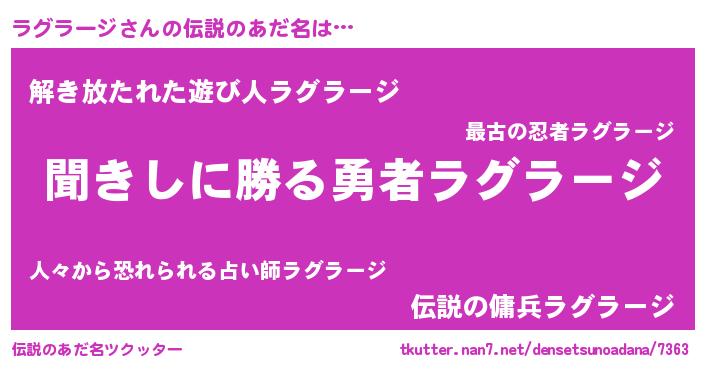 | 意味不明あだ名 | 『永久保存ラグラージ』『自称ラグラージ』 |