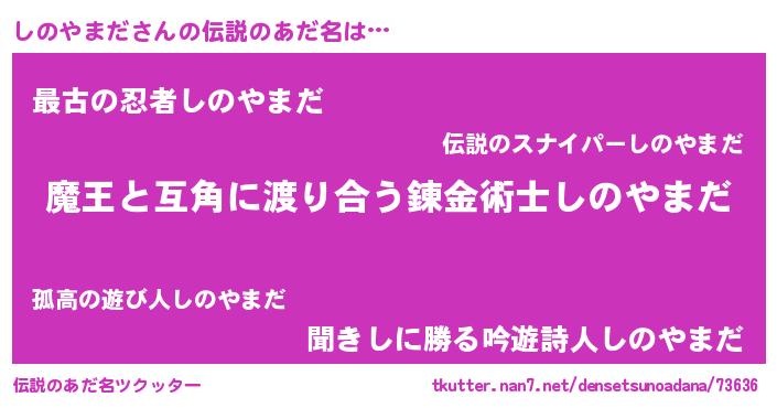 | 男性向けラノベタイトル風あだ名 | 『しのやまだに滅ぼされるだけの簡単なお仕事です』 |