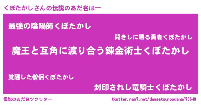 | 女子向けラノベタイトル風あだ名 | 『くぼたかし恋絵巻』 |