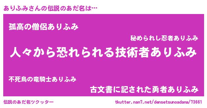 | ヒーロー風カッコイイあだ名 | 『超時空戦士アリフミ』『天弓騎士アリ』 |