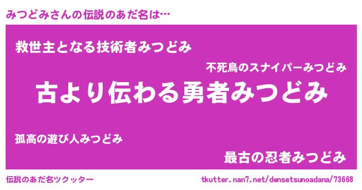 | ヒーロー風カッコイイあだ名 | 『ネオミツドミ』『慈愛の使者みつどみ』 |