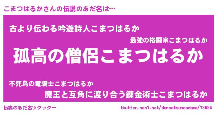 | 意味不明あだ名 | 『とにかく怪しいこまつはるか』 |