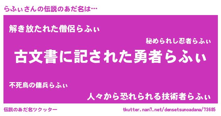 | ヒーロー風カッコイイあだ名 | 『ネオラフィ』『魔戒騎士ラフ』 |