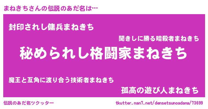 | 意味不明あだ名 | 『まねきちフォーエバー』『自称まねきち』 |