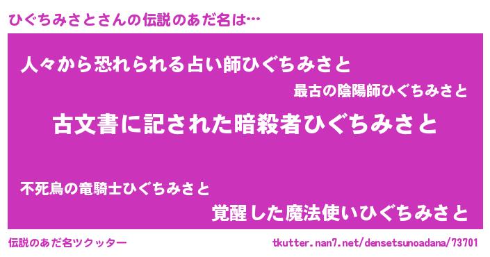 | 意味不明あだ名 | 『住所不定無職ひぐちみさと(59歳)』 |