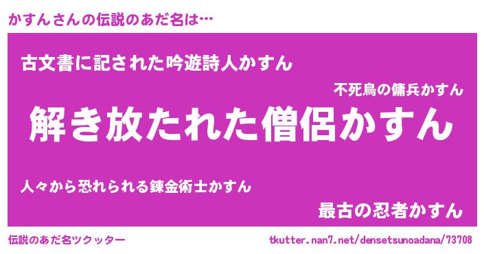 | 女子向けラノベタイトル風あだ名 | 『かすんの卵を拾いまして』 |