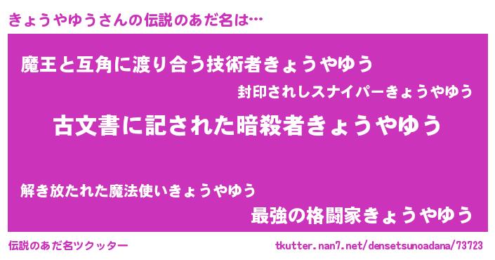 | 意味不明あだ名 | 『永久保存きょうやゆう』 |