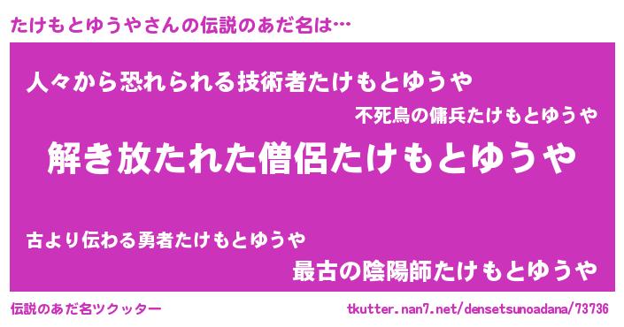 | 男性向けラノベタイトル風あだ名 | 『魔弾の王とたけもとゆうや』 |