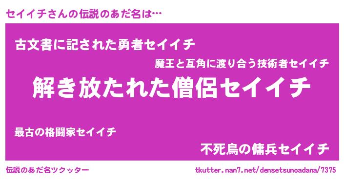 | 女子向けラノベタイトル風あだ名 | 『セイイチの卵を拾いまして』 |