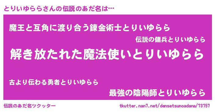 | ヒーロー風カッコイイあだ名 | 『仮面トリダー』『魔戒騎士トリ』 |