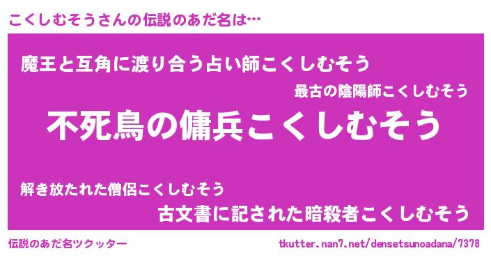 | 女子向けラノベタイトル風あだ名 | 『こくしむそう姫と円卓の騎士』 |