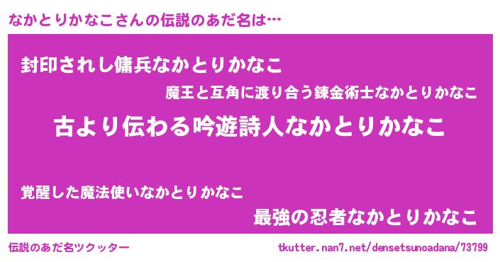 | ヘコむあだ名 | 『なかとりかなこ(小並感)』『なかもー』 |