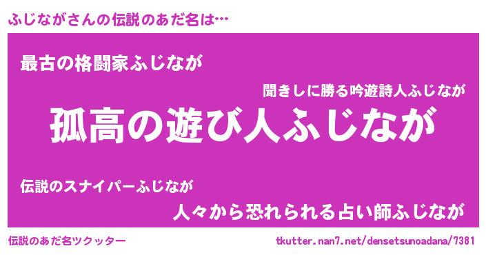 | ヒーロー風カッコイイあだ名 | 『暗黒騎士フジ』『ウルトラふじながマン』 |