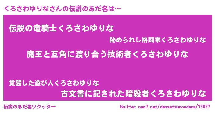 | 女子向けラノベタイトル風あだ名 | 『闇のくろさわゆりな』 |