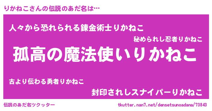 | 女子向けラノベタイトル風あだ名 | 『りかねこは平凡を望む』『闇のりかねこ』 |