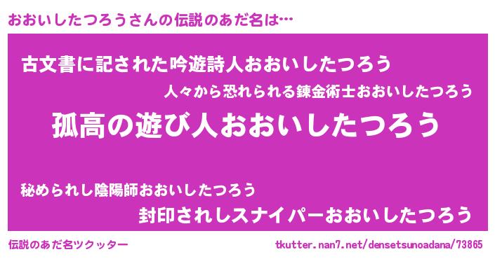 | 意味不明あだ名 | 『とにかく怪しいおおいしたつろう』 |