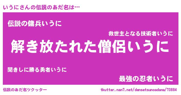 | 意味不明あだ名 | 『自称いうに』『めかぶ科いうに属』 |