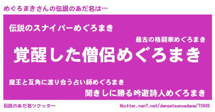 | 萌えアニメ | 主人公(めぐろまき)のあだ名『 めぐめぐきゅん』 |