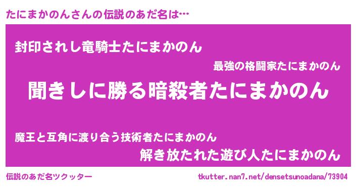 | 意味不明あだ名 | 『自称たにまかのん』 |