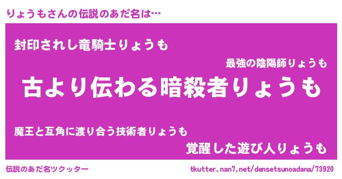 | 男性向けラノベタイトル風あだ名 | 『魔法科高校のりょうも』 |