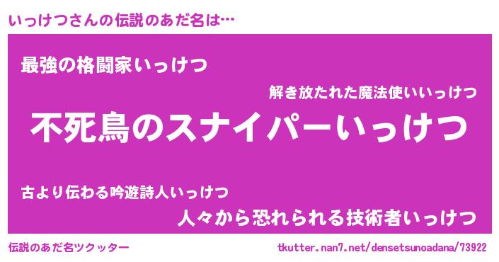 | 意味不明あだ名 | 『ペロリンいっけつ』『自称いっけつ』 |