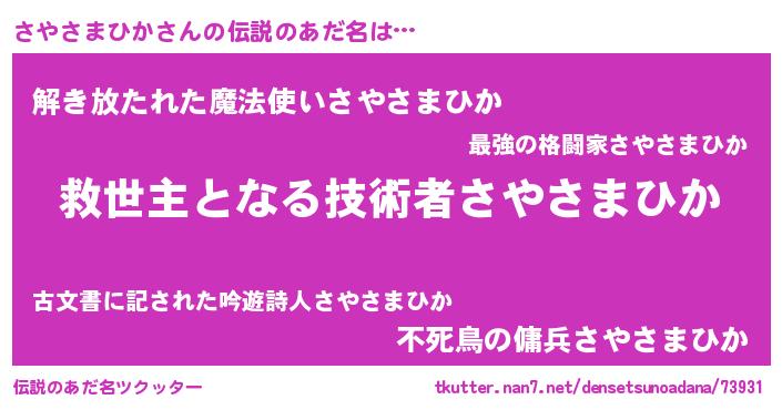 | 男性向けラノベタイトル風あだ名 | 『うちのさやさまひかが世界を掌握している!』 |