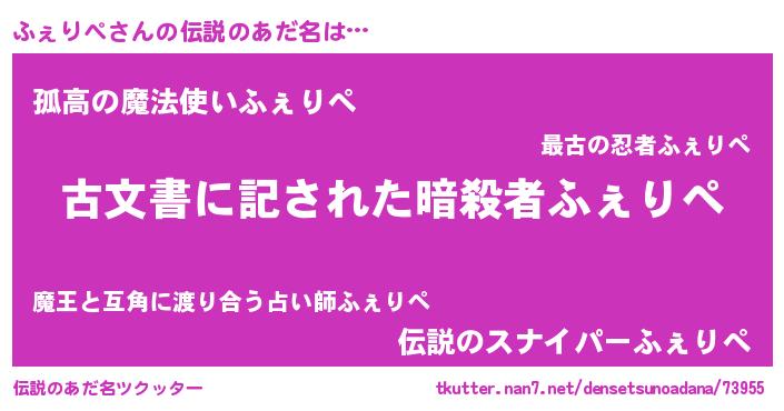| 意味不明あだ名 | 『永久保存ふぇりぺ』『ペロリンふぇりぺ』 |